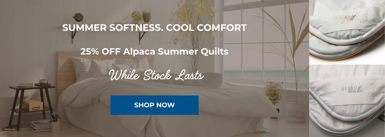 Our Australian-made collections of alpaca and merino quilts, doonas, pillows, underblankets, and comfort toppers are crafted with care, innovation, and an unwavering commitment to quality.